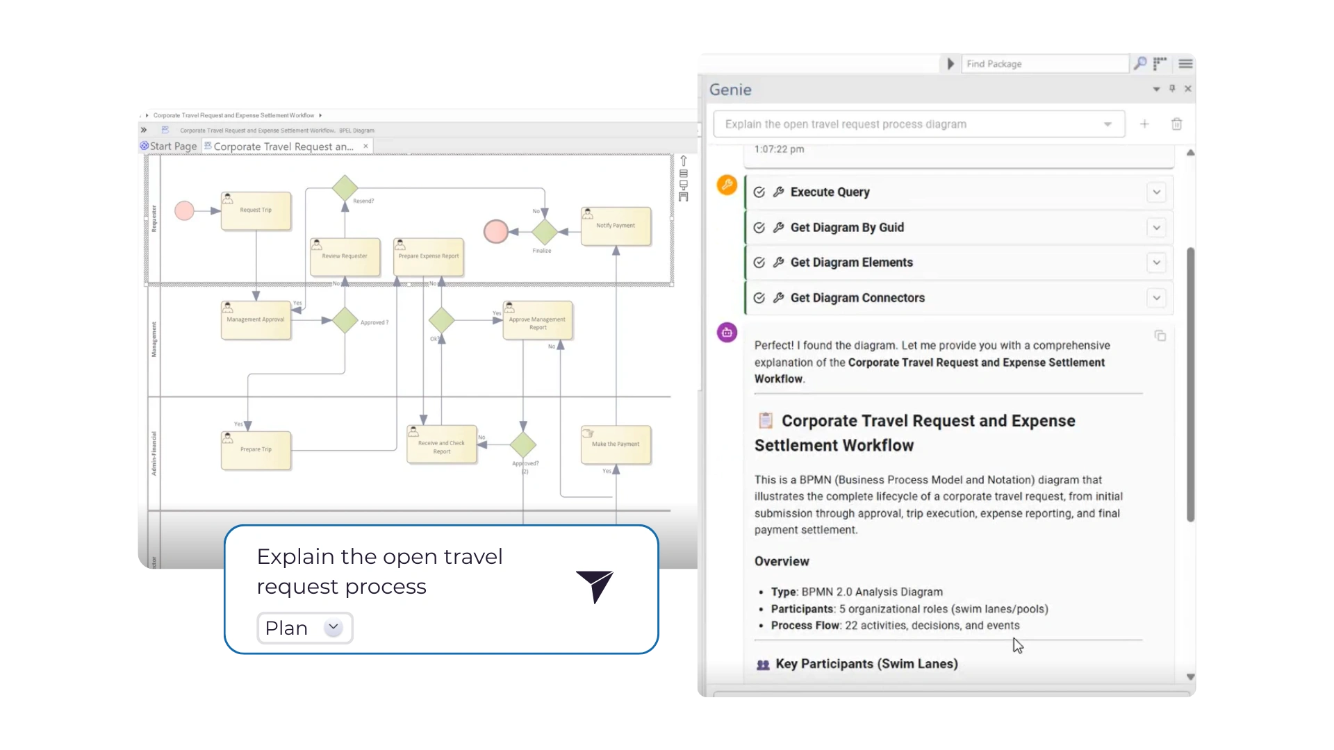 Explore models, diagrams, and repository structures using natural language. AI Assist understands relationships, dependencies, and hierarchies, delivering accurate, context-aware insights.
