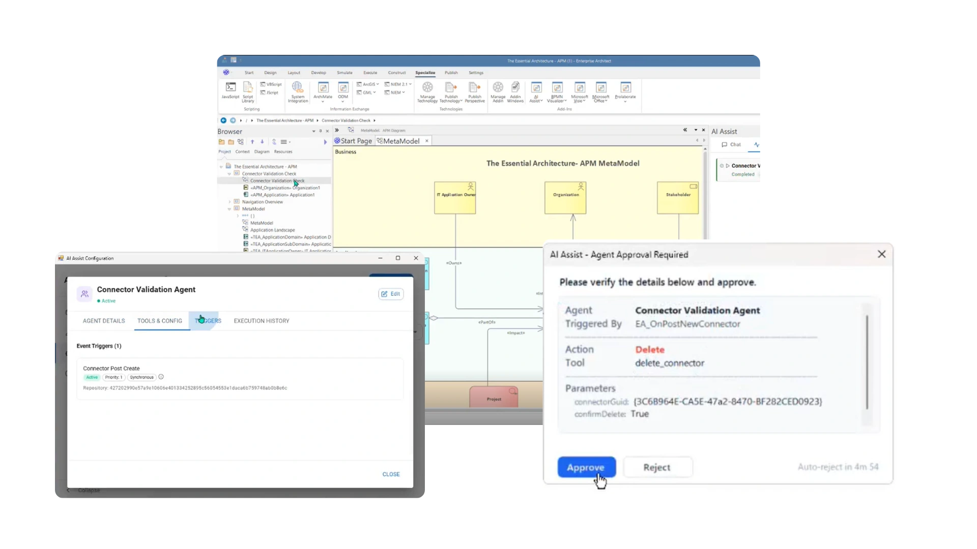 AI Assist enables you to create intelligent agents that can be mapped to Enterprise Architect Broadcast Events. These agents monitor model activities such as element creation, updates, deletions, and diagram modifications, automatically triggering predefined actions.
